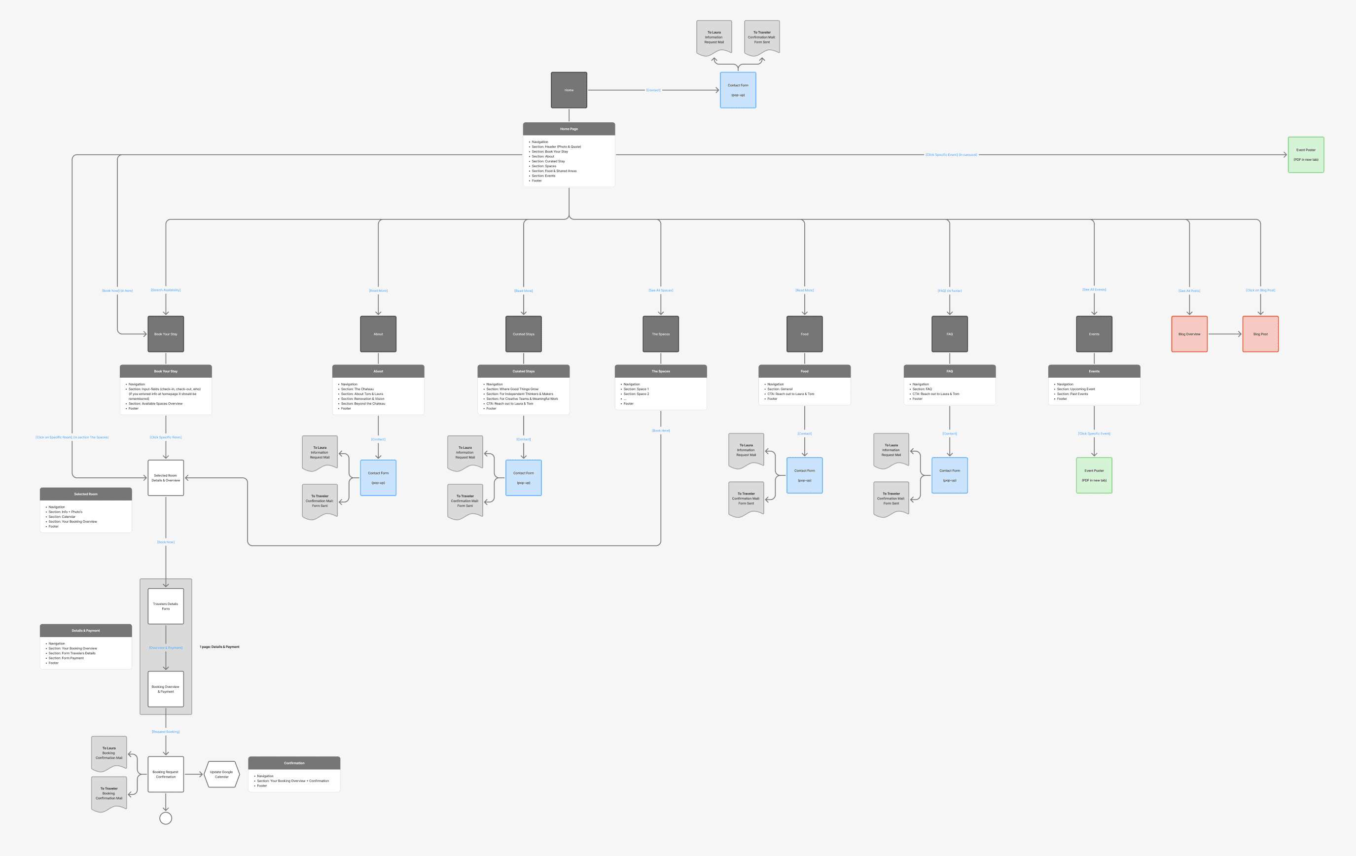 Page Structure: Defined the page structure and recommended sections for each page. Each page has a short summary section on the homepage so the content is clear at a glance, with dedicated pages for those who want to dive deeper. The booking flow pages were excluded from the homepage to keep it focused.