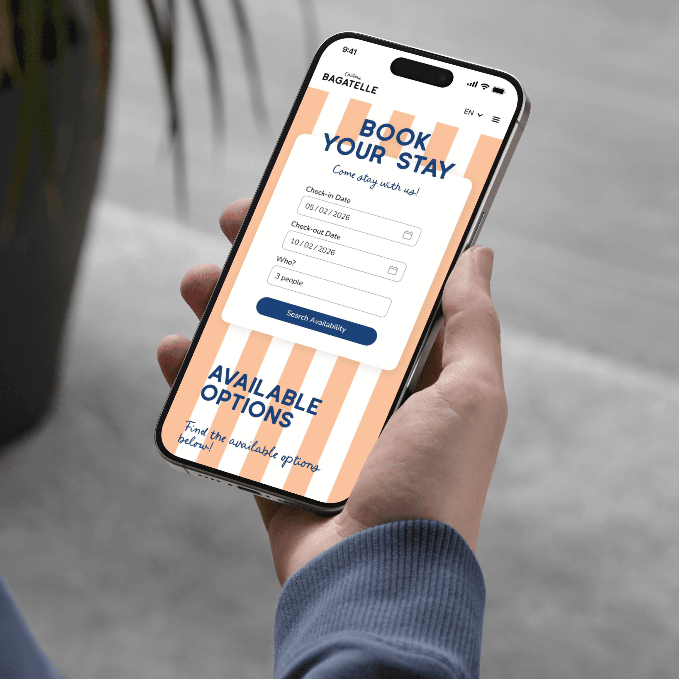 Château Bagatelle is a B&B in France run by Tom & Laura. They needed a website that would convey the warmth and character of the place, make it easy for guests to book, and be structured in a way that could grow as the business expands. The existing brand identity was already in place, so the website needed to stay true to that while bringing it to life online.